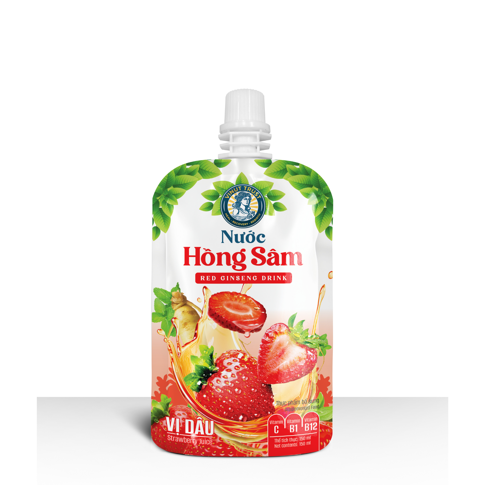 Thưởng thức sự kết hợp độc đáo giữa hồng sâm Hàn Quốc và nước ép dâu tây tươi. VINUT TRUST Nước Hồng Sâm Dâu lưu giữ hương thơm ngọt ngào tự nhiên từ những trái dâu chín mọng, hòa quyện hoàn hảo với lợi ích phục hồi sức khỏe từ hồng sâm mang đến sự tươi mát và dinh dưỡng mỗi ngày trong một túi nhỏ tiện lợi.